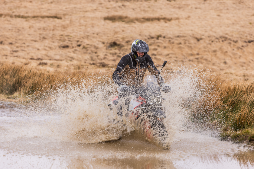 After a hearty meal, a couple of beers and a good night’s rest at the Hafod Hotel in Devils Bridge, just down the road from the Adventure Academy, everyone was raring to go for day 2. Moly and his team gave us a quick recap over coffee of what we had learnt on day one, we then saddled up and headed back to the training area eager to learn more. After a few sessions and lunch, it was time to put everything we had practised into a longer ride, out to some of the more remote parts of the complex. This was a fantastic end to the course, where we felt like we were tackling the Welsh terrain out on a ride with mates, rather than on a training course. The route included what the guys called the ‘Yellow Brick Road’ which is essentially a track with a series of ever deeper puddles and water crossings. You could hear the squeals of laughter as each person got progressively wetter each time.