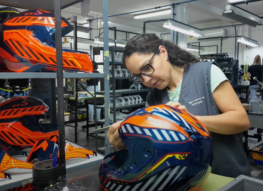 Let’s start with the construction of the helmet. I was lucky enough to go out to visit the next Factory which is about an hour south of Porto in Portugal. It quickly became evident how much work goes into Nexx helmets and how much manual hands-on work is involved. We see a lot of information from companies like ARAI about their handmade helmet process and to be fair there’s not much difference in the next Factory. I was impressed at the level of skill and detail throughout the production as well as the quality control measures at each individual step. There are also some interesting environmentally lead innovations. For example, NEXX told us that they Source all of the materials that go into the construction of their helmets from within a range of 60km of their factory and they’re also always looking at ways to reduce waste. One such Innovation is that they no longer glue all of the individual EPS liner parts together. They’ve been designed in a way that this method is no longer required and the impact of that is that the company have reduced their glue consumption from 10 tons a year to Just 2 tons per year.