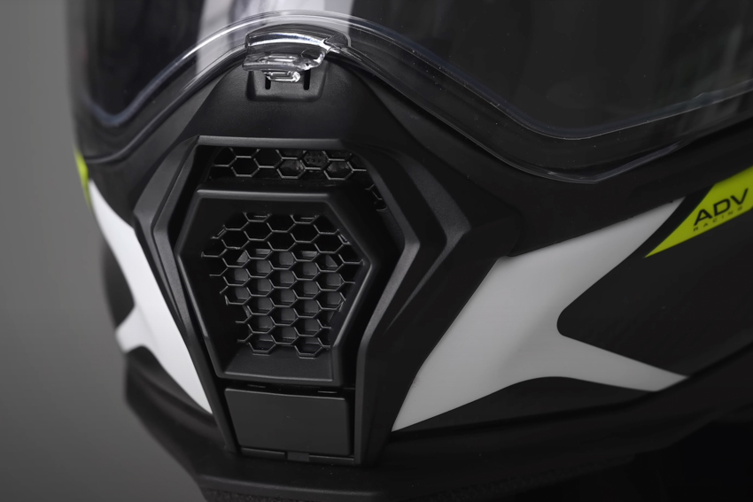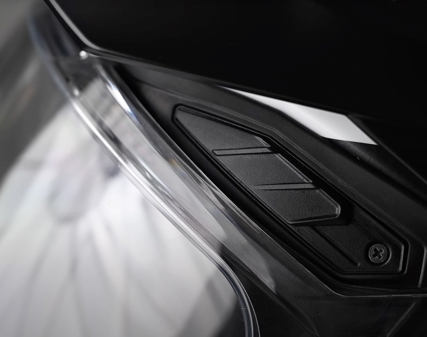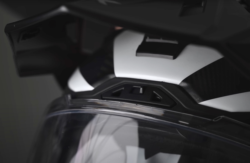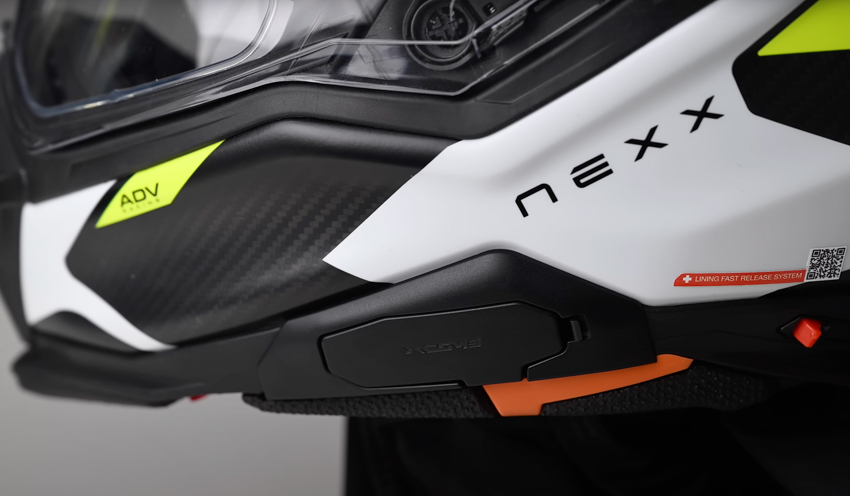 Ample ventilation is provided by one vent on the chin, a small switched vent on the forehead right above the opening, two eyebrow vents, a large Central vent and two upper-side vents. All of these are easy to operate and they do flow a lot of air which exits from four ports under the rear spoiler. The inside of the chin bar also features a winter cover which can be removed for warm weather allowing greater air flow. The helmet is also prepped for the Nexx XCOM 3 Communications unit which is made by Sena. We did get to test the system on a ride whilst at the factory, and despite the fact we were using pre-production versions, they worked very well even with more than 10 of us connected via mesh! If you want to use your own existing coms then there is still room to mount it on the side but to be fair flat space is a little limited.